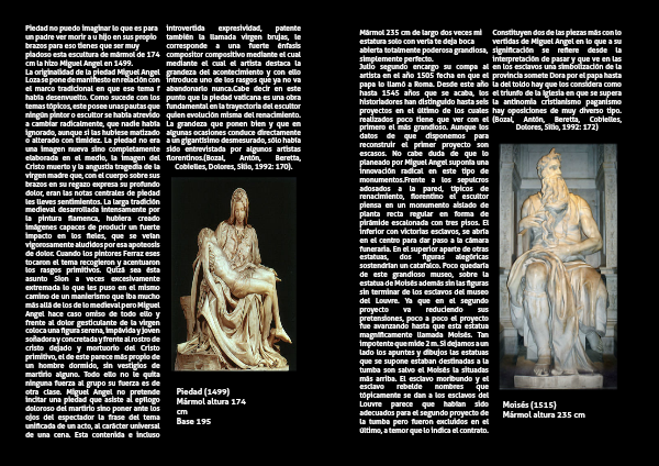 Piedad no puedo imaginar lo que es para un padre ver morir a u hijo en sus propio brazos para eso tienes que ser muy piadoso esta escultura de mármol de 174 cm la hizo Miguel Angel en 1499.