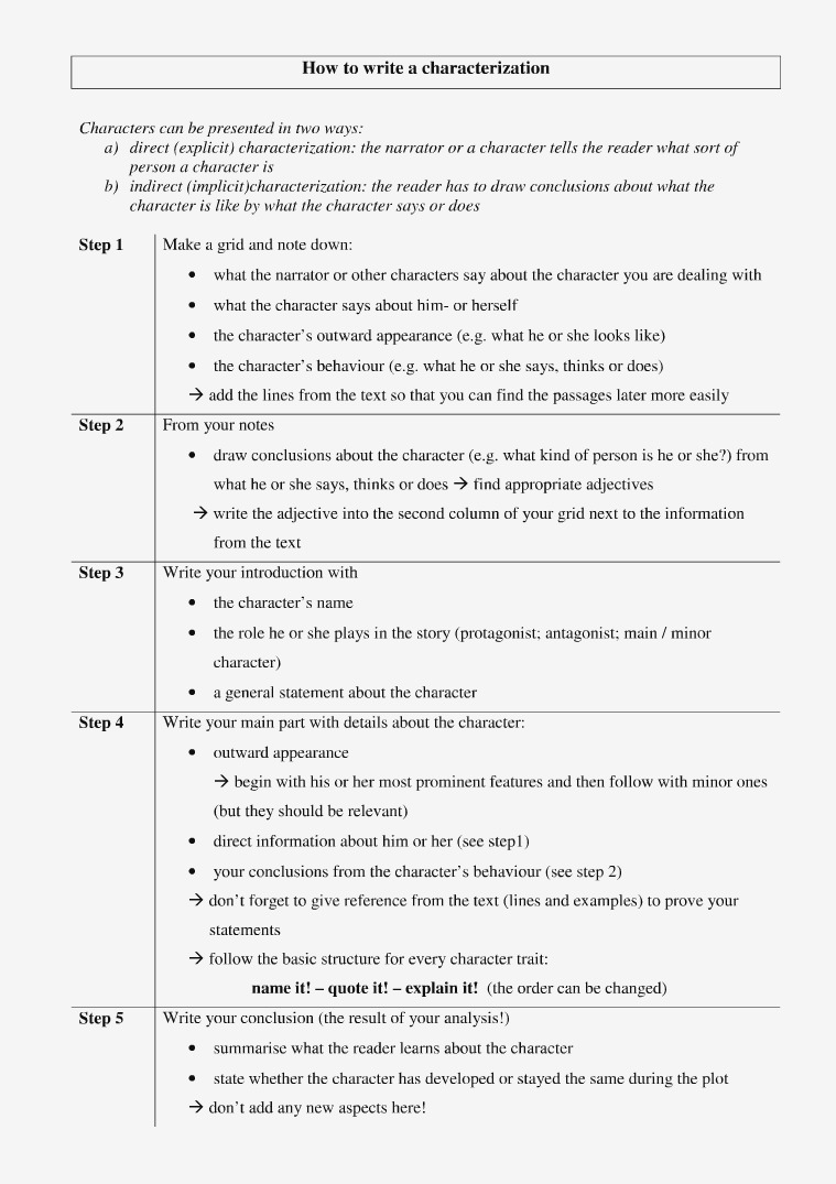 How to write a characterization