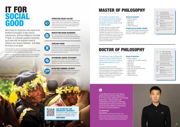 We’ re home to researchers who stand at the forefront of innovation in data science, cybersecurity, artificial intelligence and other IT fields. As a Monash graduate researcher, you’ ll work with the brightest minds to enhance your research potential- and shape the future of our world.