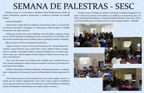 - Transito (o que é? Códigos de tr}nsitos, orientaç~o e cuidados obrigatórios, direitos e deveres no transito como pedestre ou condutor e consequências para a família, classificaç~o das infrações, consumo de bebida alcoólica, entre outros. Parceria da Polícia Militar de Concórdia através do Cabo Vanderlei Ribeiro – PROERD.