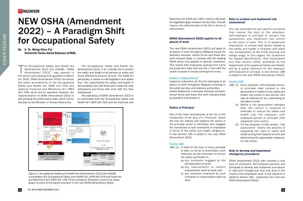 Figure 1 : Occupational Safety and Health Act ( Amendment ) 2022 ( Act A1648 ) consolidates the Occupational Safety and Health Act 1994 ( Act 514 ) and Factories and Machinery Act 1964 ( Act 139 ) ( To be repealed ). Employers need to be made aware of some of the salient provision in the new OSHA ( Amendment 2022 ).