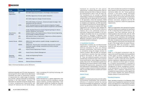Major operating companies in the Malaysian O & G industry have recognised the importance of human factors and ergonomics in their projects and have started integrating it as a component of the project