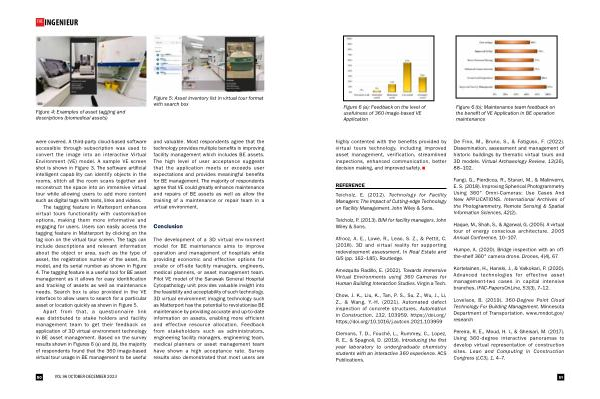 and valuable . Most respondents agree that the technology provides multiple benefits in improving facility management which includes BE assets . The high level of user acceptance suggests that the application meets or exceeds user expectations and provides meaningful benefits for BE management . The majority of respondents agree that VE could greatly enhance maintenance and repairs of BE assets as well as allow the training of a maintenance or repair team in a virtual environment .