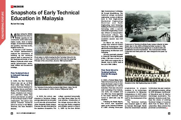 programmes to prepare students to be technicians in preparation for Malaysian Independence in 1957 which would require teams of technical staff for the development of the country.