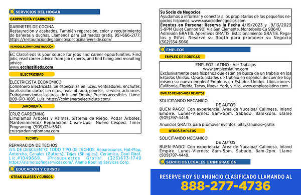 RESERVE HOY SU ANUNCIO CLASIFICADO LLAMANDO AL 888-277-4736