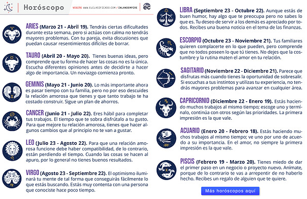 Horóscopo ARIES ( Marzo 21 - Abril 19 ). Tendrás ciertas dificultades durante esta semana , pero si actúas con calma no tendrás mayores problemas . Con tu pareja , evita discusiones que puedan causar resentimientos difíciles de borrar .