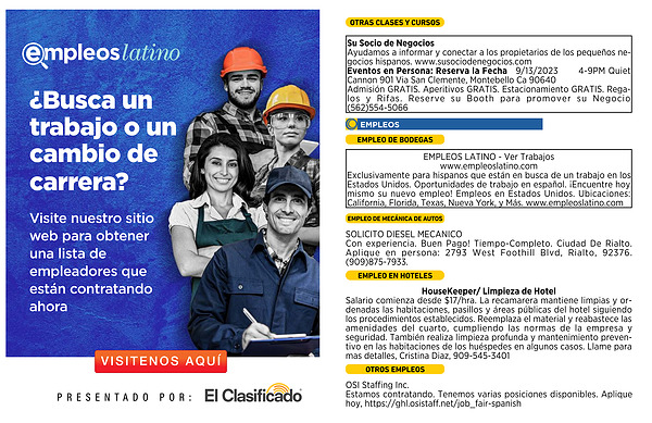 Su Socio de Negocios Ayudamos a informar y conectar a los propietarios de los pequeños negocios hispanos . www . susociodenegocios . com Eventos en Persona : Reserva la Fecha 9 / 13 / 2023 4-9PM Quiet Cannon 901 Via San Clemente , Montebello Ca 90640 Admisión GRATIS . Aperitivos GRATIS . Estacionamiento GRATIS . Regalos y Rifas . Reserve su Booth para promover su Negocio ( 562 ) 554-5066