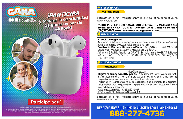 RESERVE HOY SU ANUNCIO CLASIFICADO LLAMANDO AL 888-277-4736