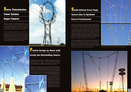 Recently, a new generation of cross-rope structure being tested aims to realize added savings for 765 kV suspension towers in terms of tower weight per conductor attachment point. At a height of 31.5 m, for example, this new structure is some 5000 kg lighter than earlier versions with further reduction in project costs due to the impact on guys and foundations. Clearances marked on cross-rope structure of 400 kV line to Namibia.
