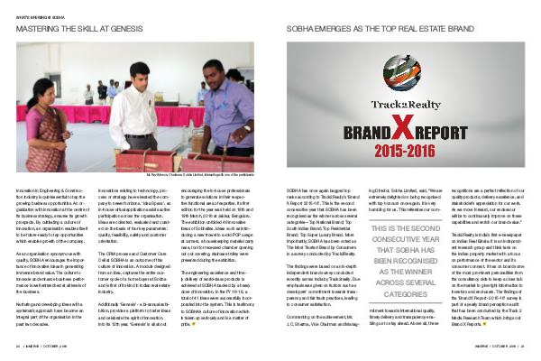 Additionally‘ Genesis’- a bi-annual exhibition, provides a platform to foster ideas and celebrate the spirit of innovation. Into its 12th year,‘ Genesis’ is all about encouraging the in-house professionals to generate solutions in their respective functional area of expertise. Its first edition for the year was held on 18th and 19th March, 2016 at Jakkur, Bengaluru. The exhibition unfolded 46 innovative ideas of Sobhaites. Ideas such as introducing a new trowel to avoid POP usage at corners, a housekeeping material carry case, tool for recessed chamber opening cut out covering, staircase trolley were presented during the exhibition.