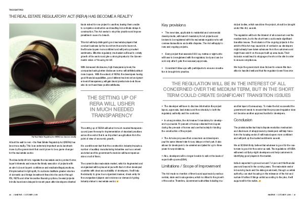 THE REAL ESTATE REGULATORY ACT (RERA) HAS BECOME A REALITY