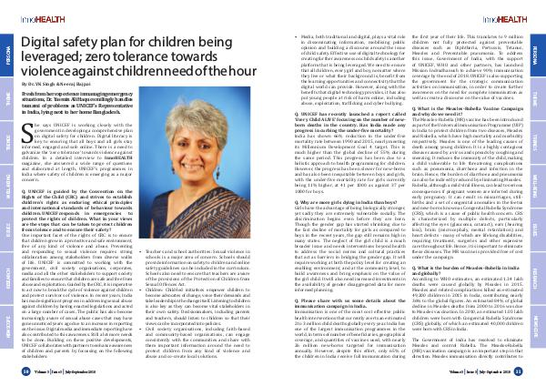 • Media, both traditional and digital, plays a vital role in disseminating information, mobilising public opinion and building a discourse around the issue of child safety. Effective use of digital technology for creating further awareness on child safety is another platform that is being leveraged. We need to ensure that all children, every girl and boy, no matter where they live or what their background is, benefit from the learning opportunities and connectivity that the digital world can provide. However, along with the benefits that digital technology provides, it has also put young people at risk of harm online, including abuse, exploitation, trafficking and cyber bullying.