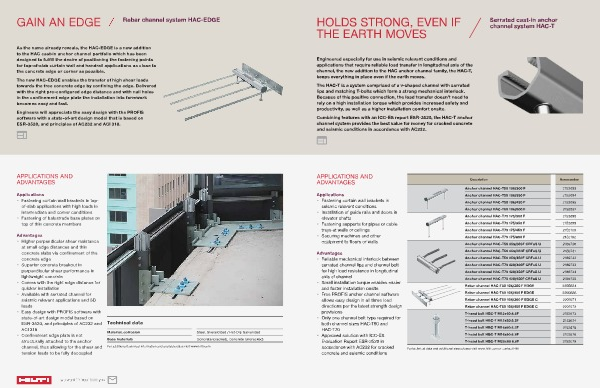 to the HAC cast-in anchor channel portfolio which has been