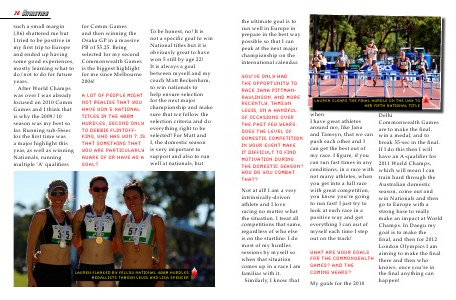 After World Champs was over I was already focused on 2010 Comm Games and I think that is why the 2009 / 10 season was my best so far. Running sub-56sec for the first time was a major highlight this year, as well as winning Nationals, running multiple‘ A’ qualifiers