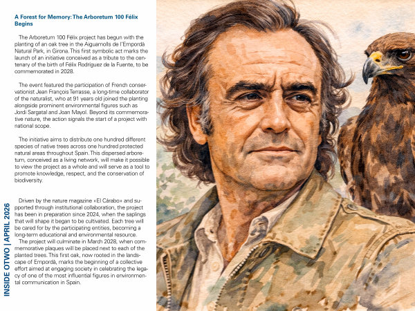 The Arboretum 100 Félix project has begun with the planting of an oak tree in the Aiguamolls de l’ Empordà Natural Park, in Girona. This first symbolic act marks the launch of an initiative conceived as a tribute to the centenary of the birth of Félix Rodríguez de la Fuente, to be commemorated in 2028.
