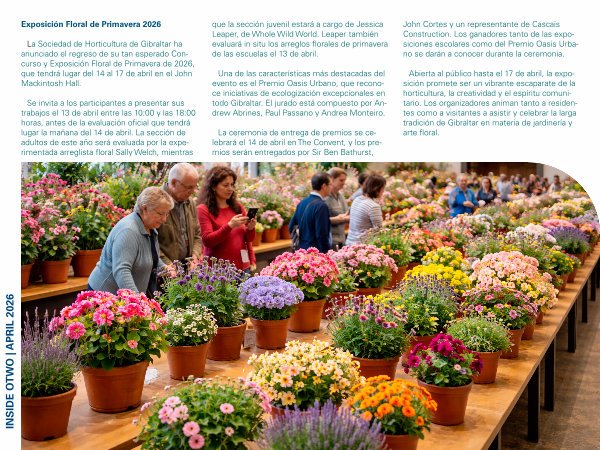 La Sociedad de Horticultura de Gibraltar ha anunciado el regreso de su tan esperado Concurso y Exposición Floral de Primavera de 2026, que tendrá lugar del 14 al 17 de abril en el John Mackintosh Hall.