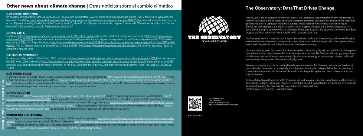 Built on collaboration and transparency, The Observatory will work alongside universities, public bodies, and businesses to deliver clarity, credibility, and foresight. Its mission is simple but powerful: to give Gibraltar and the Campo de Gibraltar the data-driven foundation they need to build a more resilient and prosperous future. The Observatory is coming soon … watch this space.