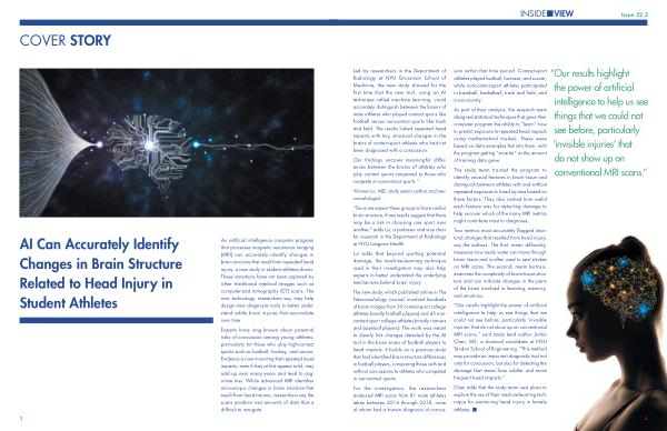 AI Can Accurately Identify Changes in Brain Structure Related to Head Injury in Student Athletes