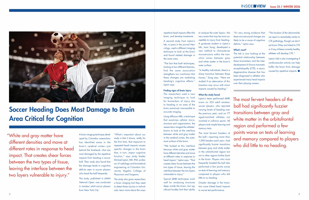 Issue 35.1 WINTER 2026 repetitive head impacts affect the brain, and develop treatments.