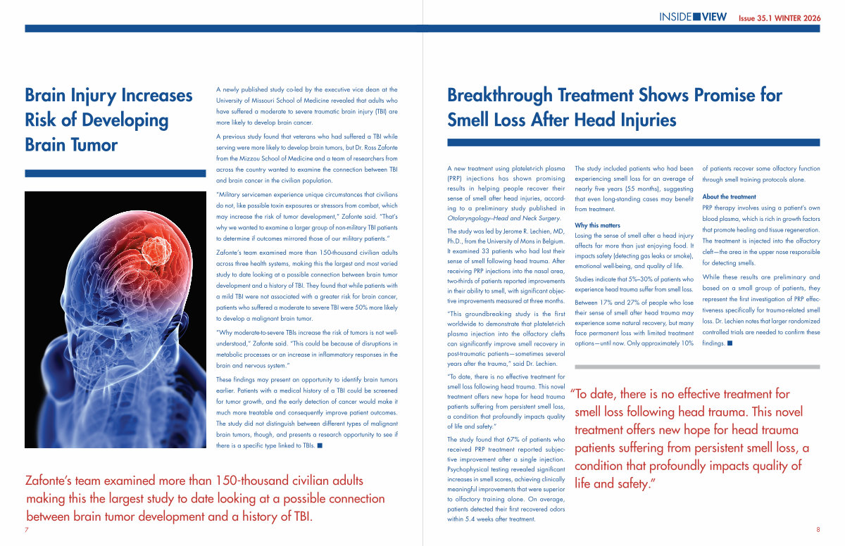 “ To date, there is no effective treatment for smell loss following head trauma. This novel treatment offers new hope for head trauma patients suffering from persistent smell loss, a condition that profoundly impacts quality of life and safety.”