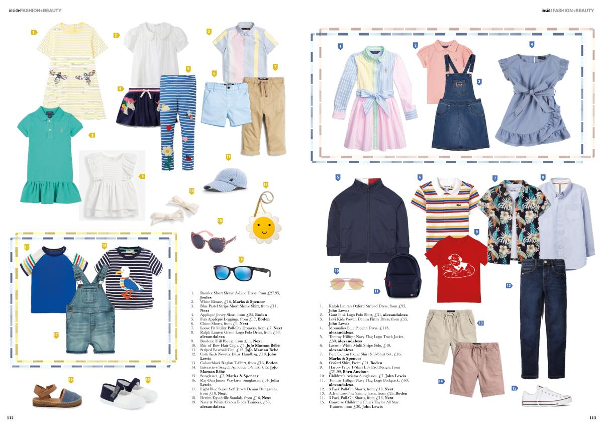 Next 4 . Appliquė Jersey Skort , from £ 25 , Boden 5 . Fun Appliquė Leggings , from £ 17 , Boden 6 . Chino Shorts , from £ 6 , Next 7 . Loose Fit Utility Pull-On Trousers , from £ 7 , Next 8 . Ralph Lauren Green Logo Polo Dress , from £ 69 , alexandalexa 9 . Broderie Frill Blouse , from £ 11 , Next 10 . Pair of Bow Hair Clips , £ 4 , JoJo Maman Bėbė 11 . Striped Baseball Cap , £ 12 , JoJo Maman Bėbė 12 . Cath Kids Novelty Daisy Handbag , £ 18 , John