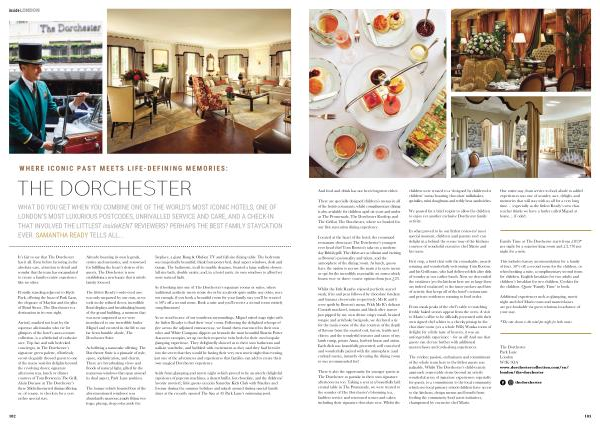WHAT DO YOU GET WHEN YOU COMBINE ONE OF THE WORLD ’ S MOST ICONIC HOTELS , ONE OF LONDON ’ S MOST LUXURIOUS POSTCODES , UNRIVALLED SERVICE AND CARE , AND A CHECK-IN THAT INVOLVED THE LITTLEST insideKENT REVIEWERS ? PERHAPS THE BEST FAMILY STAYCATION EVER . SAMANTHA READY TELLS ALL ...