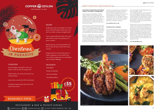 is the current holder of the Best Indian Restaurant in the Taste of Kent Awards ( www . tasteofkentawards . co . uk ) and was also named in the top 100 Indian Restaurants by the British Curry Awards . Adding to this long list of prestigious recognitions , Raja was recently honoured at a special seminar and dinner in the House of Commons for his contribution to the UK economy and has also had the pleasure of being asked to judge in Channel 4 ’ s ‘ Secret Supper Club ’.