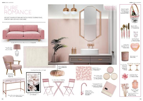 USE SOFT SHADES OF PINK AND TACTILE PIECES TO BRING PEACE , COMFORT AND LOVE INTO YOUR HOME .