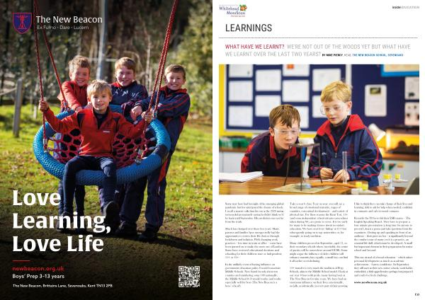 WHAT HAVE WE LEARNT ? WE ’ RE NOT OUT OF THE WOODS YET BUT WHAT HAVE WE LEARNT OVER THE LAST TWO YEARS ? BY MIKE PIERCY , HEAD , THE NEW BEACON SCHOOL , SEVENOAKS