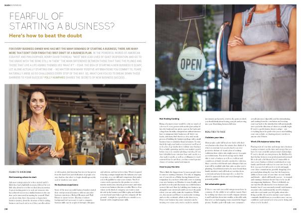 FOR EVERY BUSINESS OWNER WHO HAS MET THE MANY DEMANDS OF STARTING A BUSINESS , THERE ARE MANY MORE THAT DON ’ T EVER FINISH THE FIRST DRAFT OF A BUSINESS PLAN . IN THE POWERFUL WORDS OF AMERICAN ESSAYIST AND PHILOSOPHER , HENRY DAVID THOREAU : “ MOST MEN LEAD LIVES OF QUIET DESPERATION AND GO TO THE GRAVE WITH THE SONG STILL IN THEM .” THE MAIN DIFFERENCE BETWEEN THOSE THAT TAKE THE PLUNGE AND THOSE THAT LIVE A LIFE ASKING THEMSELVES ‘ WHAT IF ?’ – FEAR . THE IDEA OF STARTING A NEW BUSINESS IS SCARY , LET ALONE ACTUALLY STARTING ONE – NO MATTER HOW MANY POSITIVE AFFIRMATIONS YOU COMMIT TO , FEARS NATURALLY ARISE AS DO CHALLENGES EVERY STEP OF THE WAY . SO , WHAT CAN YOU DO TO BREAK DOWN THESE BARRIERS TO YOUR SUCCESS ? POLLY HUMPHRIS SHARES THE SECRETS OF NEW BUSINESS SUCCESS ...