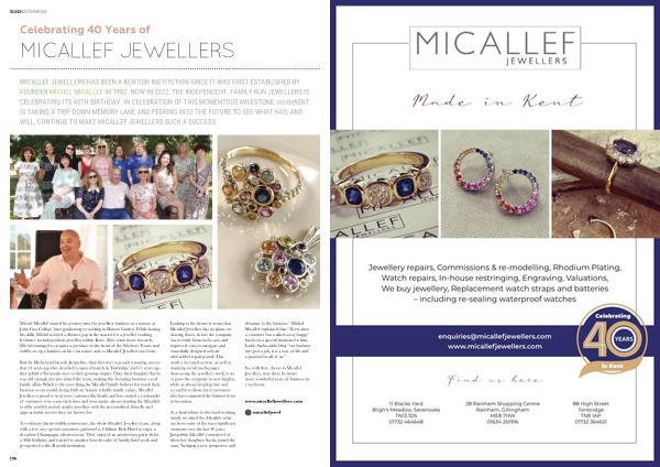MICALLEF JEWELLERS HAS BEEN A KENTISH INSTITUTION SINCE IT WAS FIRST ESTABLISHED BY FOUNDER MICHEL MICALLEF IN 1982 . NOW IN 2022 , THE INDEPENDENT , FAMILY RUN JEWELLERS IS CELEBRATING ITS 40TH BIRTHDAY . IN CELEBRATION OF THIS MOMENTOUS MILESTONE , insideKENT IS TAKING A TRIP DOWN MEMORY LANE AND PEEKING INTO THE FUTURE TO SEE WHAT HAS , AND WILL , CONTINUE TO MAKE MICALLEF JEWELLERS SUCH A SUCCESS .