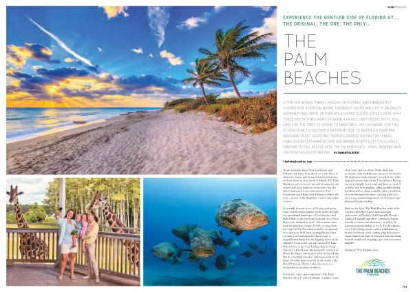 UTTER THE WORDS “ FAMILY HOLIDAY TO FLORIDA ” AND IMMEDIATELY THOUGHTS OF A CERTAIN MOUSE , THE BRIGHT LIGHTS AND LIFE OF ORLANDO ’ S INTERNATIONAL DRIVE , OR PERHAPS A SOPHISTICATED ( OR AS CAN BE WITH THREE KIDS IN TOW ) JAUNT TO MIAMI A LA WILL SMITH ’ S EPIC DITTY , WILL LIKELY BE THE FIRST TO SPRING TO MIND . WELL , NOT ANYMORE . FOR THIS IS YOUR YEAR TO DISCOVER A DIFFERENT SIDE TO AMERICA ’ S FUNSHINE , SUNSHINE COAST . BOASTING TROPICAL SHORES , DISTINCTIVE DINING , FABULOUS ENTERTAINMENT AND DISCERNING HOSPITALITY EXCELLENCE , PREPARE TO FALL IN LOVE WITH THE PALM BEACHES - YOU ’ LL WONDER HOW YOU EVER HOLIDAYED BEFORE ... BY SAMANTHA READY