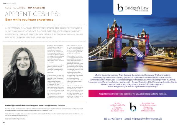 In light of 6 - 12 February being National Apprenticeship Week , I have been reflecting on what apprenticeship schemes have done for my life . I am sure many young people just starting out will agree with me when I say , entering the working world is a very daunting step to take . Wondering if you are good enough , wondering what you have to offer , and where to even begin .