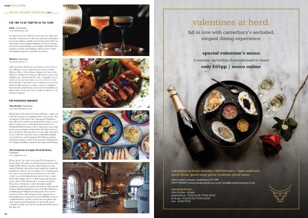 History doesn ’ t get much closer than The Pumproom at Copper Rivet . Set inside an architectural marvel born of the Industrial Revolution , this date-night destination is also amidst Chatham ’ s Royal Dockyard , making for double the magnificence when it comes to setting . Now a stunning space for visitors to not only immerse themselves in one of the county ’ s most enthralling heritage spots but also to enjoy relaxed fine dining , with its cocktail lounge and gorgeous menu a date at The Pumproom is certain to mesmerise . Steeped in a rich history , evident through beautiful architecture and leftover artefacts and features , enjoy riverside windows offering magnificent views of the River Medway , including Queen Elizabeth I ’ s gunpowder store and the iconic grey stone castle of Upnor on the opposite shore . Outstanding food creations by head chef Will Freeman are complemented by expertly curated wines from Kent and made using seasonal ingredients , be they locally grown vegetables , locally reared meat or locally landed fish such as Rye Bay cod .