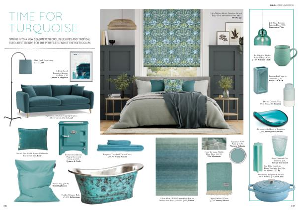 SPRING INTO A NEW SEASON WITH COOL BLUE HUES AND TROPICAL TURQUOISE TRENDS FOR THE PERFECT BLEND OF ENERGETIC CALM .