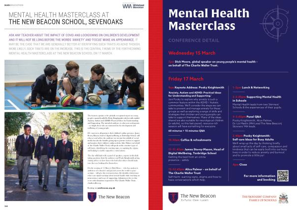 MENTAL HEALTH MASTERCLASS AT THE NEW BEACON SCHOOL , SEVENOAKS