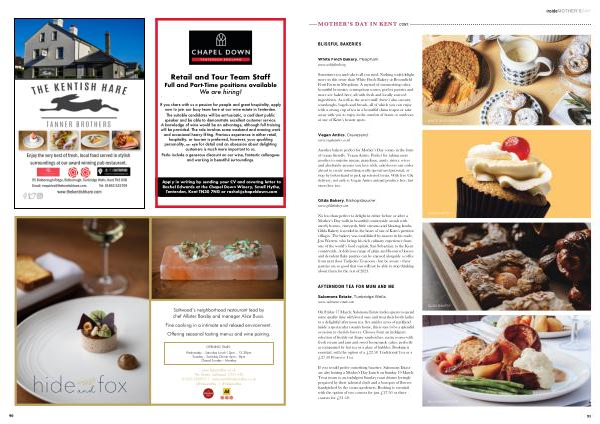 No less than perfect to delight in either before or after a Mother ’ s Day walk in beautiful countryside awash with stately homes , vineyards , little streams and bleating lambs , Gilda Bakery is nestled in the heart of one of Kent ’ s prettiest villages . The bakery was established by master in his trade , Jon Warren , who brings his rich culinary experience from one of the world ’ s food capitals , San Sebastian , to the Kent countryside . A delicious range of plain and flavoured loaves and decadent flaky pastries can be enjoyed alongside a coffee from next door Tadpoles Tearoom - but be aware - these pastries are so good that you will not be able to stop thinking about them for the rest of 2023 .