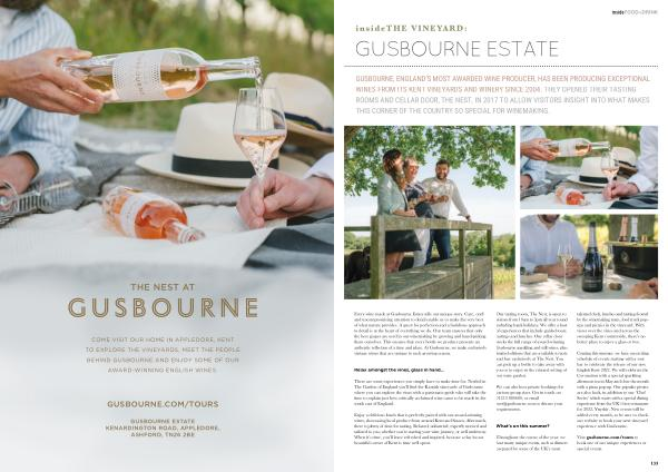 GUSBOURNE , ENGLAND ’ S MOST AWARDED WINE PRODUCER , HAS BEEN PRODUCING EXCEPTIONAL WINES FROM ITS KENT VINEYARDS AND WINERY SINCE 2004 . THEY OPENED THEIR TASTING ROOMS AND CELLAR DOOR , THE NEST , IN 2017 TO ALLOW VISITORS INSIGHT INTO WHAT MAKES THIS CORNER OF THE COUNTRY SO SPECIAL FOR WINEMAKING .