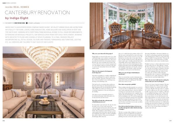 INDIGO EIGHT IS AN INTERIOR DESIGN COMPANY BASED IN KENT . WE ENJOY TURNING IDEAS AND ASPIRATIONS INTO REALITY FOR HOME LOVERS , HOME RENOVATORS , HOME BUILDERS AND DEVELOPERS IN KENT AND THE SOUTH EAST . WORKING WITH EVERYTHING FROM INDIVIDUAL ROOMS TO FULL HOUSE REFURBISHMENTS , EXTENSIONS OR NEW BUILD PROJECTS , OUR SERVICES SPAN FROM VERY EARLY INVOLVEMENT , WORKING WITH ARCHITECT ’ S PLANS AND LOOKING AT SPACE PLANNING , TO A FINAL FINISHED PROJECT INCORPORATING ALL DETAIL DESIGN , COLOURS AND FINISHES , FURNISHINGS AND FURNITURE , LIGHTING ETC . ALL SERVICES ARE TAILORED TO SUIT EACH OF OUR CLIENTS .