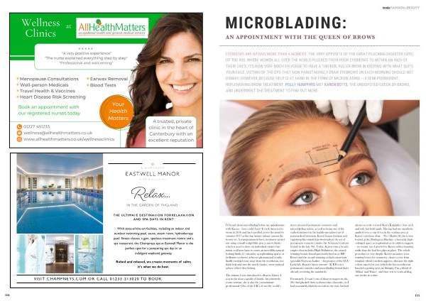 The minute I was introduced to Karen , I knew I was in the most capable of hands . An extremely warm woman , she is also the consummate professional . One of the UK ’ s , if not the world ’ s most esteemed permanent cosmetics and microblading artists , as well as being one of the earliest pioneers in the highly-specialised art of paramedical tattooing , Karen began training and supplying like-minded professionals in the art of permanent cosmetics ( under the Nouveau Contour brand ) in the late 90s . Today , Karen runs a beauty empire that includes High Definition , the awardwinning beauty brand previously known as HD Brows and the award-winning eyelash extensions specialist Nouveau Lashes – the pioneer of the LVL Lash Lift . Karen ’ s latest venture - K . B Pro is a permanent cosmetics and microblading brand that ’ s already rewriting the standards .