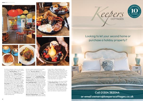 For those wanting to appreciate the arts in Deal , there are plenty of venues that provide the opportunity . The Astor Theatre has an array of varied events and entertainment all year round with everything from plays , musicals , comedy , orchestra and bands to film and their very own gallery . This month , enjoy the music of The Marvin Gaye Song Book as well as a Seaside Variety Show and much acclaimed live music from local band Gentlemen of Few . More of the arts can be found at various galleries throughout Deal including the Don ’ t Walk Walk Gallery , an independent artistrun gallery boasting a punk-rock ethic and a strong desire to offer something a little different – including the works of Noel Fielding and Jim Moir , aka Vic Reeves , who owns a house nearby . With artists selected for the gallery for offering refreshing , challenging and thought-provoking perspectives , expect pieces that range from abstract fantasy to linear with stark representational honesty . More art and knowledge can be discovered at the Kent Museum of Moving Image , which is currently showing four exhibitions . These include 35,000 Years to Catch a Shadow : A Reflective Exhibition , which challenges visitors to explore the phenomenon , arts , and technologies of the shadow ; World War One on Film and in the Media : Representation & Remembrance , Art & Authenticity ; Passport to Ealing : The Films and Their Posters , 1938-1958 : a major retrospective of a unique moment in cinema history ; and Dissolving Views : Victorian Super-Spectacle , a new exhibition of 19thcentury magic lanterns and equipment .