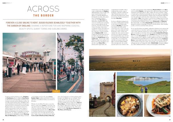 A visit to Lewes can easily be tied into a trip to neighbouring city , Brighton . Although historic in its own right , with many seaside-loving Victorian influences remaining , Brighton is a thriving hub of activity with a much more cosmopolitan feeling of modernity . Visit The Lanes for independent shopping galore ; find your way round the maze of twisting narrow passages glinting with the gemstones of jewellers and the bright colours of boutique shops , before reaching the seafront , upon which you will discover a whole host of buzzy bars , impressive seafood restaurants and the Brighton i360 . Travel straight up in this giant glass pod , 450- feet high , with panoramic views of Brighton , the South Downs and the south coast – why not enjoy a glass of Prosecco while you ’ re up there , too ? Back on the beach , daytrippers can ’ t miss the iconic Palace Pier , a fantastic photo opportunity and wonderful spot for families with its traditional amusements , sugared doughnuts , candy floss and fish and chips . Wander down to the end to gaze back at the pebble beach , or look across to the eerie Victorian ghost of the ruined West Pier .