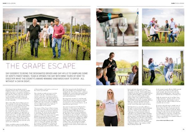 SAY GOODBYE TO BEING THE DESIGNATED DRIVER AND SAY HELLO TO SAMPLING SOME OF KENT ’ S FINEST WINES . TEAM iK SPENDS THE DAY WITH WINE TOURS OF KENT TO DISCOVER WHAT THE COUNTY ’ S AWARD-WINNING VINEYARDS HAVE TO OFFER - ALL WITHOUT A CAR IN SIGHT …