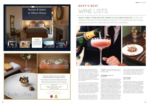 WHEN IT COMES TO WINE AND FOOD , SYNERGY IS THE ULTIMATE OBJECTIVE . AS BOTH THE GARDEN OF ENGLAND AND WINE GARDEN OF ENGLAND , THIS IS SOMETHING KENT ’ S DINING SCENE HAS ACHIEVED WITH SHEER UNADULTERATED DELICIOUSNESS .