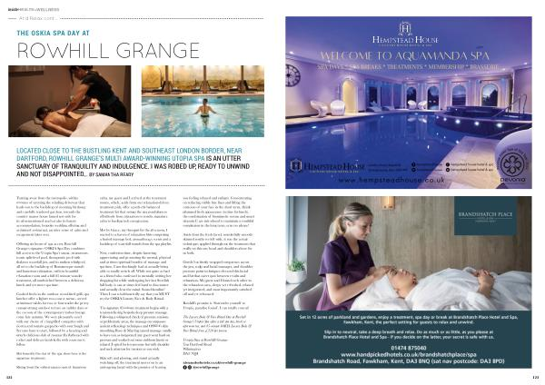 LOCATED CLOSE TO THE BUSTLING KENT AND SOUTHEAST LONDON BORDER , NEAR DARTFORD , ROWHILL GRANGE ’ S MULTI AWARD-WINNING UTOPIA SPA IS AN UTTER SANCTUARY OF TRANQUILITY AND INDULGENCE . I WAS ROBED UP , READY TO UNWIND AND NOT DISAPPOINTED … BY SAMANTHA READY