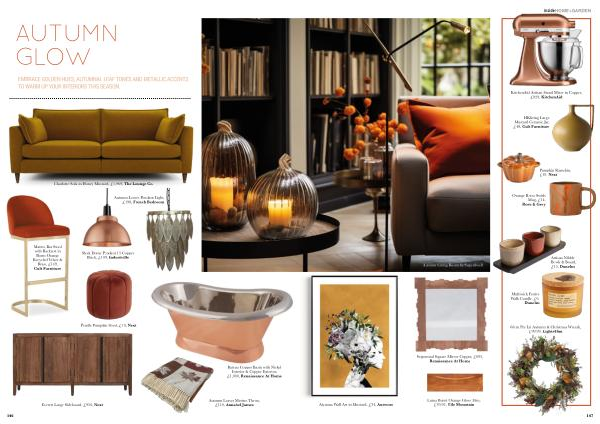 EMBRACE GOLDEN HUES , AUTUMNAL LEAF TONES AND METALLIC ACCENTS TO WARM UP YOUR INTERIORS THIS SEASON .
