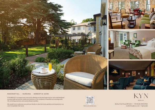 KYN BICKLEY is a brand-new care home offering an elevated approach to care : individualised journeys built around the needs and interests of our residents in beautiful surroundings with life-enriching practices and outstanding hospitality .