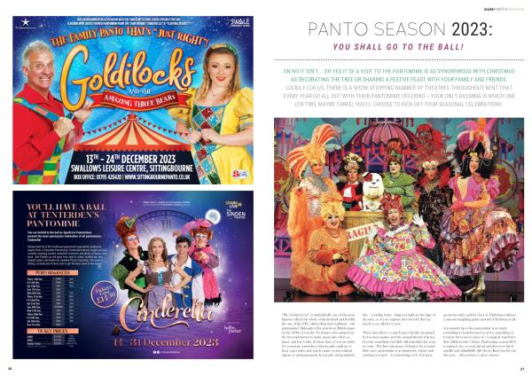 ON NO IT ISN ’ T ... OH YES IT IS ! A VISIT TO THE PANTOMIME IS AS SYNONYMOUS WITH CHRISTMAS AS DECORATING THE TREE OR SHARING A FESTIVE FEAST WITH YOUR FAMILY AND FRIENDS . LUCKILY FOR US , THERE IS A SHOW-STOPPING NUMBER OF THEATRES THROUGHOUT KENT THAT EVERY YEAR GO ALL OUT WITH THEIR PANTOMIME OFFERING – YOUR ONLY DILEMMA IS WHICH ONE ( OR TWO , MAYBE THREE ) YOU ’ LL CHOOSE TO KICK OFF YOUR SEASONAL CELEBRATIONS .