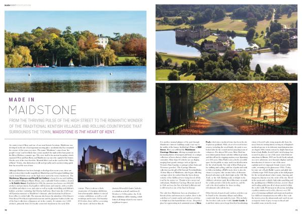 Other historical marvels and outdoor activities can be found in the charming villages and rolling countryside that surrounds the town . This includes ‘ the loveliest castle in the world ’, Leeds Castle . It is said that visitors never forget their first breathtaking vision of Leeds Castle rising majestically from the moat . From its riveting history serving six of England ’ s medieval queens , to its elaborate transformation into an elegant 20th-century retreat by Anglo-American heiress Lady Baillie , Leeds Castle ’ s rich heritage has secured its place as one of the most visited historic attractions in Britain . 2022 saw Leeds Castle embark on a new adventure , new thematic displays and the introduction of visitors to one of the most sophisticated yet enigmatic female owners of the castle , returning to the glamorous 1930s . Today , become one of Lady Baillie ’ s guests and glide into a Gatsby-esque 1930 ’ s house party as her staff prepare for the weekend ahead , where music , dancing and dangerous liaisons were the order of the day . Revel in the gossip and cocktails , high stakes gambling and the sparkling mix of Hollywood stars , society ’ s finest and leading politicians all of whom partied within the castle ’ s walls . Picturesque in all seasons , including a golden autumn such as this , discover over 500 acres of stunning parklands and manicured gardens . Let children ’ s imaginations run wild as they scale the turrets across the playgrounds and watch in awe as majestic birds of prey swoop overhead and beautiful swans swim the moat .