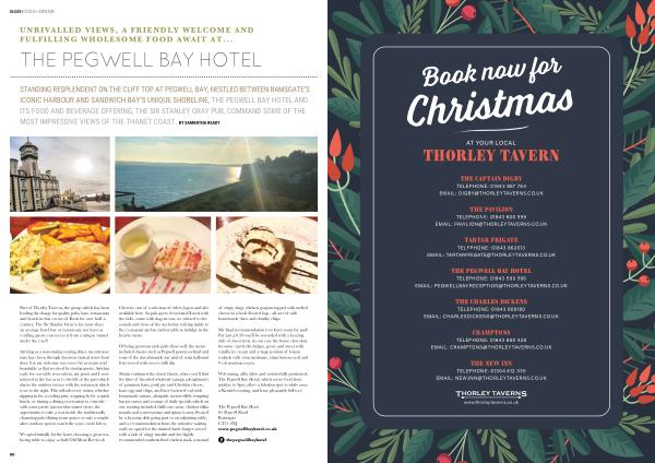 STANDING RESPLENDENT ON THE CLIFF TOP AT PEGWELL BAY , NESTLED BETWEEN RAMSGATE ’ S ICONIC HARBOUR AND SANDWICH BAY ’ S UNIQUE SHORELINE , THE PEGWELL BAY HOTEL AND ITS FOOD AND BEVERAGE OFFERING , THE SIR STANLEY GRAY PUB , COMMAND SOME OF THE MOST IMPRESSIVE VIEWS OF THE THANET COAST . BY SAMANTHA READY